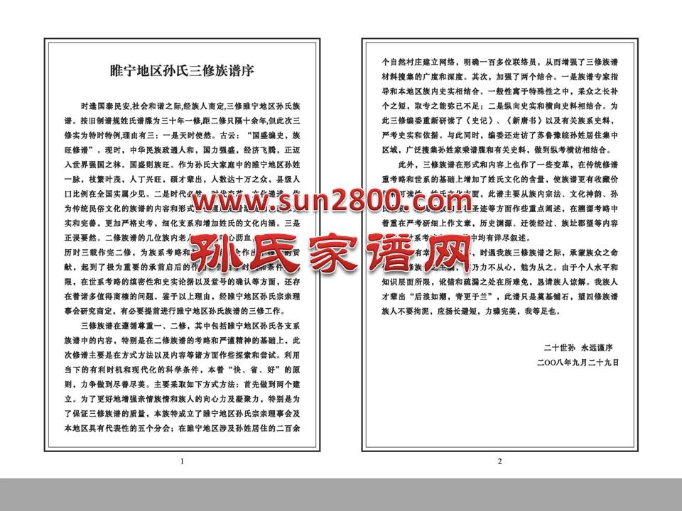 〖江苏〗睢宁孙氏族谱(2008年,2卷)